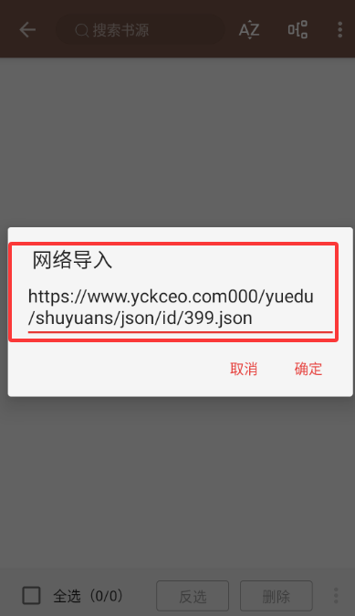 4、将书源连接复制进入并确定