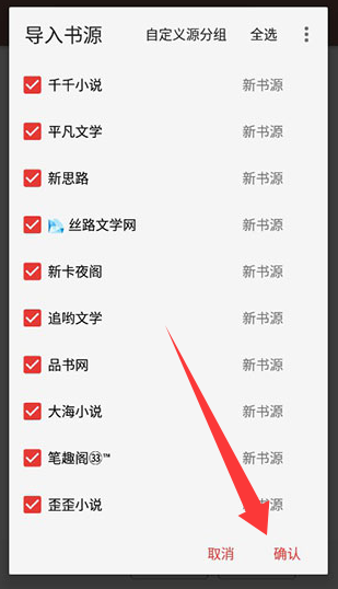 1、选择要导入的书源
