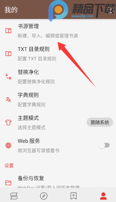 2、在我的界面中打开书源管理
