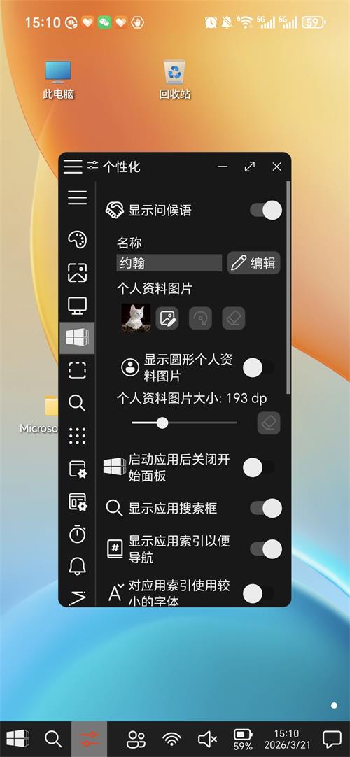 4、支持快速进入设置,个性化等内容。