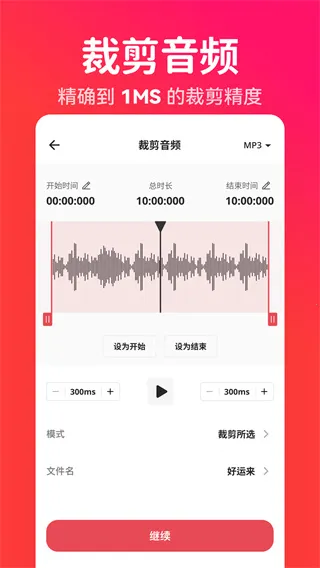 3.处理精确度高:可精确到1MS级别进行音频裁剪,满足高要求。