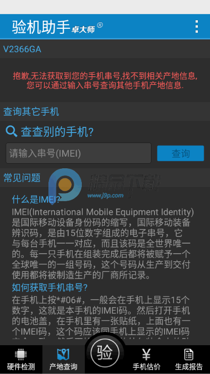 3、请指出,在“产地查询”选项中,必须输入手机的 IMEI序列号,有些手机不能使用此功能。