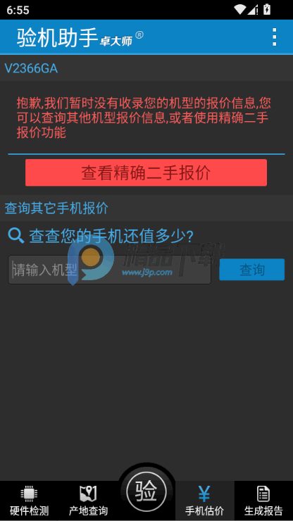 4、相对于前面提到的功能,“手机估价”功能的使用起来要简单得多,只要我们键入手机的型号,就可以很容易地得到一部手机的当前价格。