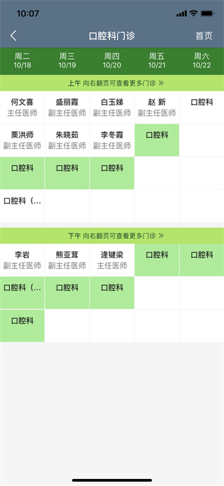 5、选择好之后系统就会显示接下来七天内的坐诊医师情况了;