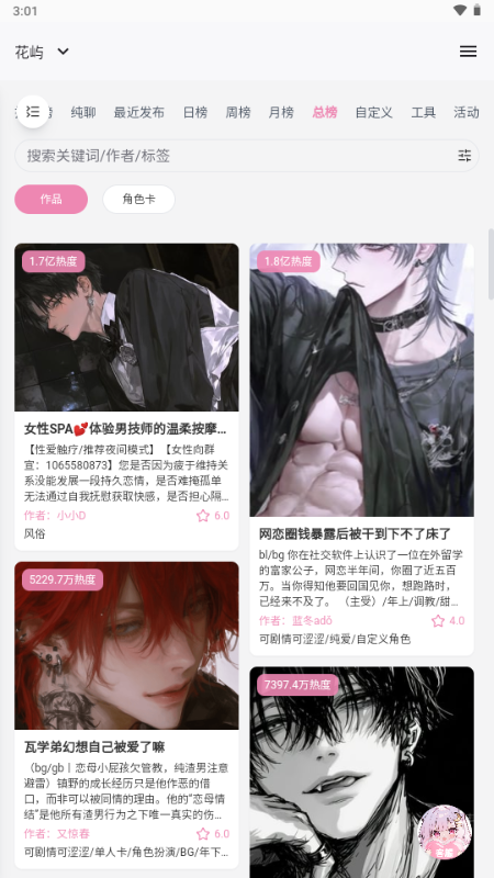 花屿 APP 是一款主打智能互动交流的 AI 聊天应用,整体产品定位与热门的同类趣味对话平台风格相近,聚焦打造轻松沉浸式的线上陪伴体验。软件依托智能语义交互技术,搭建灵活自然的对话场景,能贴合用户聊天节奏回应互动,适配日常倾诉闲聊、趣味脑洞交流。