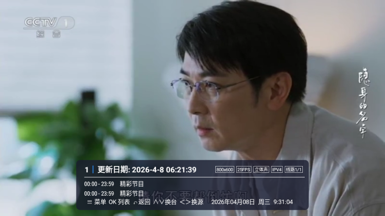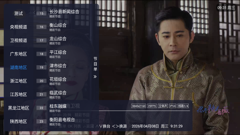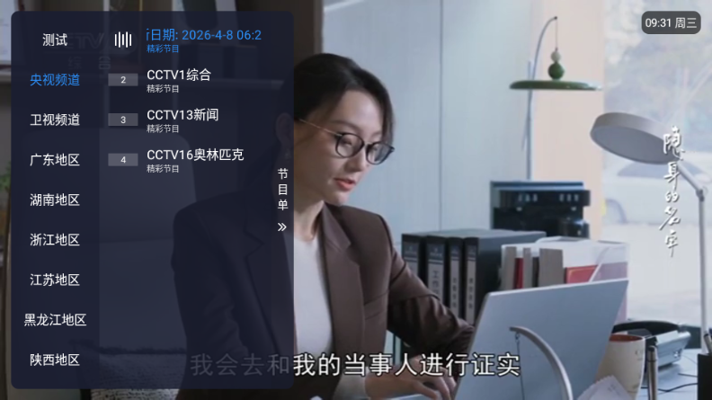 2、点击左侧屏幕可以显示频道列表。