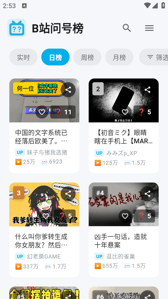 编辑点评:B站问号榜,刷抽象作品超爽