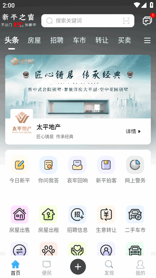 新平之窗是新平地区人气旺的本地门户社区平台,汇聚生活资讯、社区交流、便捷服务预订等功能。有丰富论坛、房屋出租等特色,含视频观看、专业客服等亮点,优势众多,打造一站式本地生活信息平台。