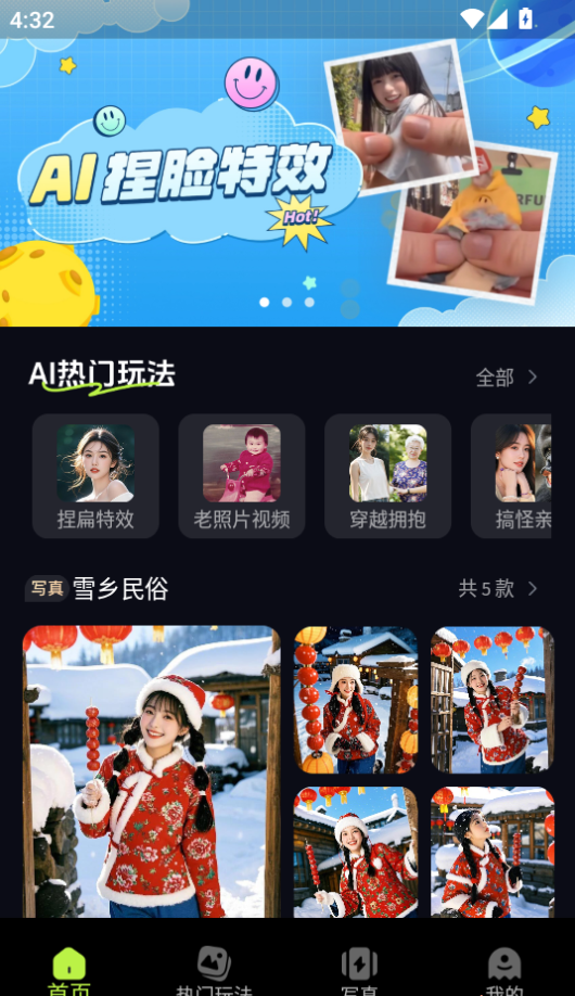 穿越时空的拥抱、拥抱小时候的自己、让猫咪变美少女,还能体验 AI 捏捏、等视频玩法。