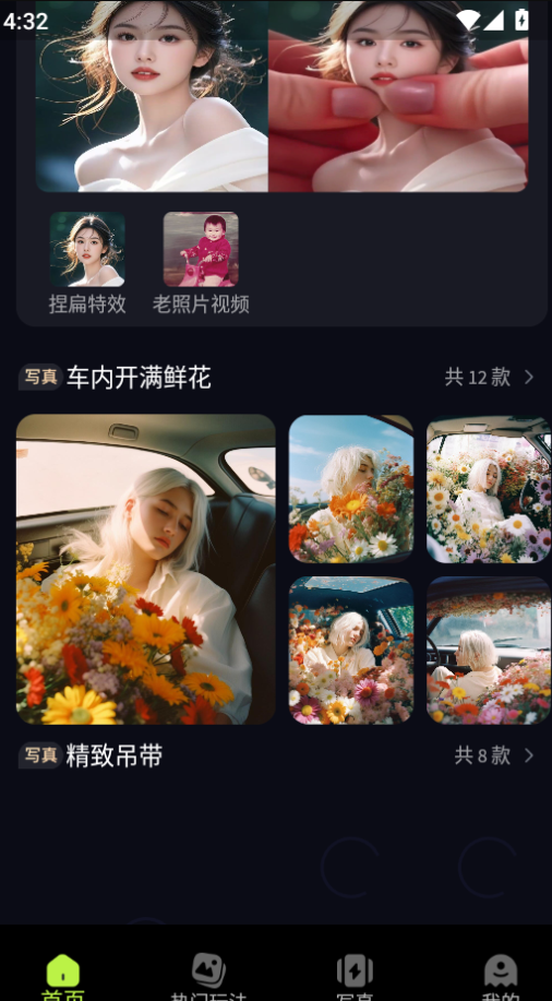 最近爆火的ai写真你拍了吗?快来试试我们的AI写真功能吧,只需上传一张照片,就可以合成不同模版的美丽的您,感受千种美丽的你。它的效果非常逼真,让你足不出户、轻轻松松拍出写真大片。有众多风格可供选择,簪花少女、美式证件照、复古港风、新中式、江南古风、森系、梦幻精灵少女等。