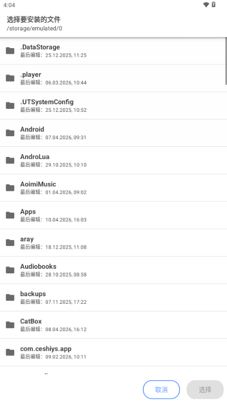 点击“安装APK”按钮,选择基础APK和特定配置的附加APK,或选择包含所有必需APK的ZIP存档,然后点击“选择”