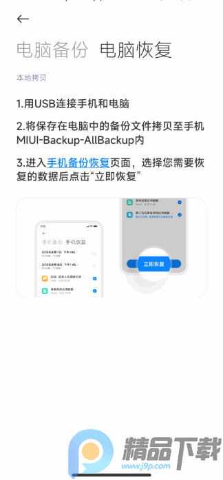 4、将电脑中保存的备份文件夹传回手机进行还原