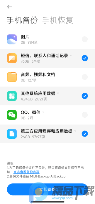 小米备份app专为小米用户设计,功能强大且操作简便。它支持一键备份和恢复数据,包括多媒体文件、系统设置等。通过加密技术保护隐私,用户可放心使用。此外,它还支持零流量换机,方便用户更换新机时迁移数据