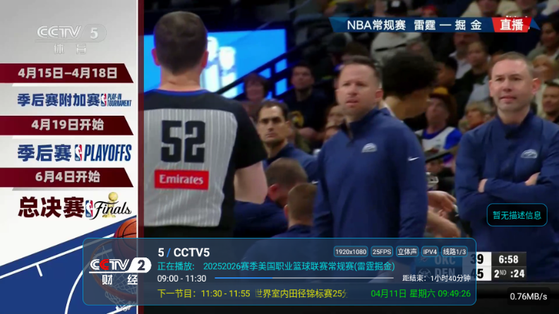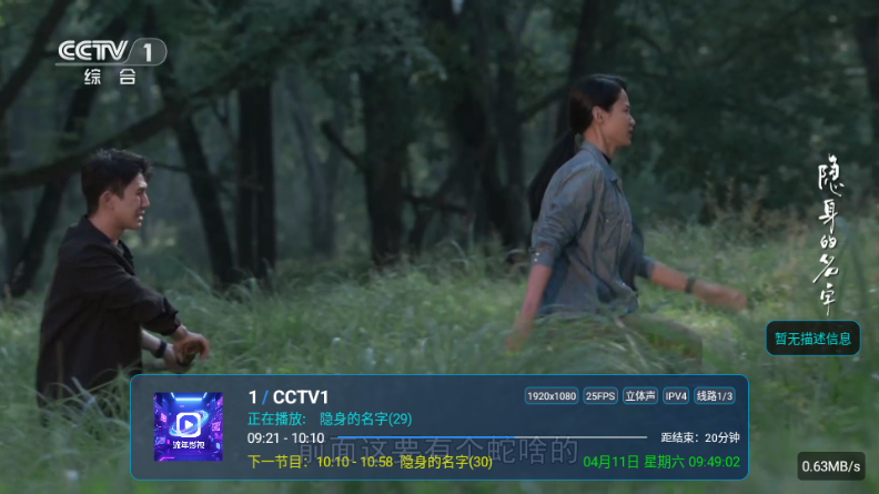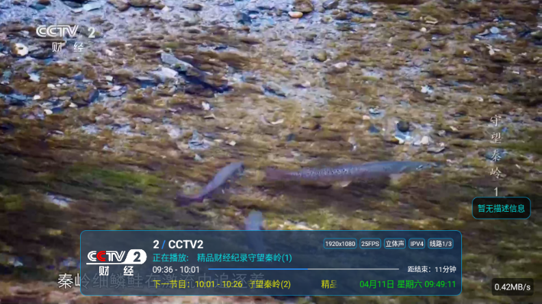 3、点击左侧屏幕可以显示频道列表切换频道。