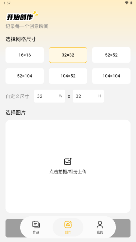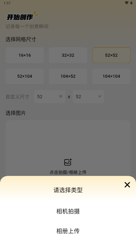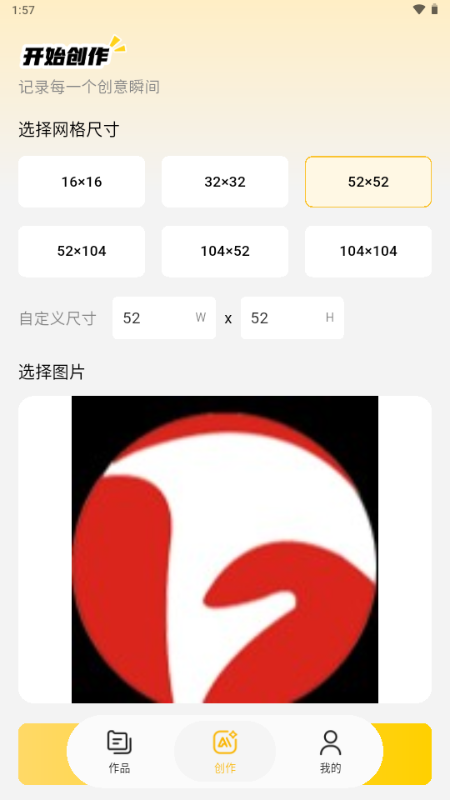 【DIY自由创作】支持自定义画布尺寸(10x10 至 50x50),自由绘制专属图案。