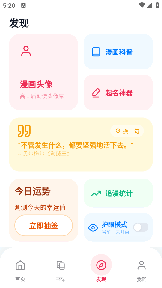 2. 内容贴心实用,有护眼模式追漫统计,每次打开像闯入甜甜的漫画世界,满足对二次元的所有小期待。