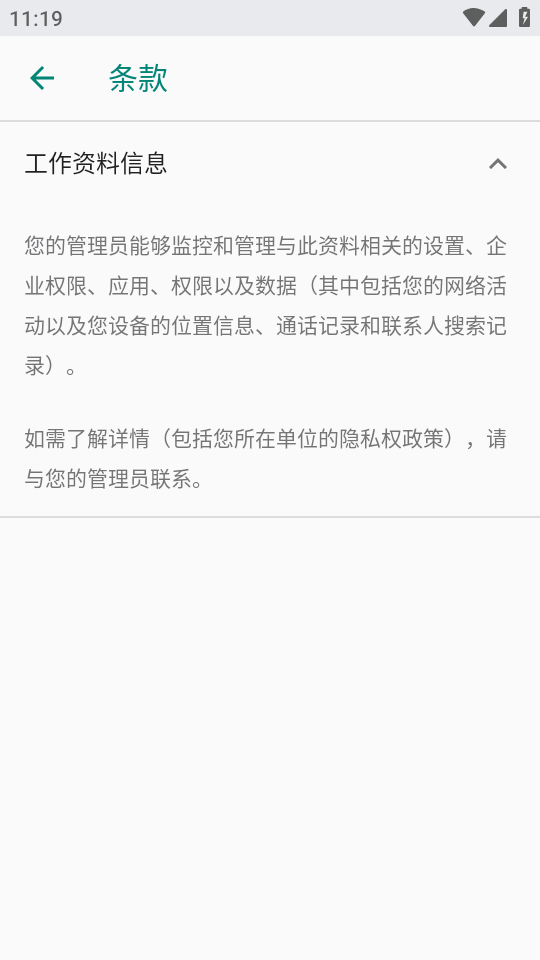 主要规则是不可信的应用只能出现在工作配置文件中