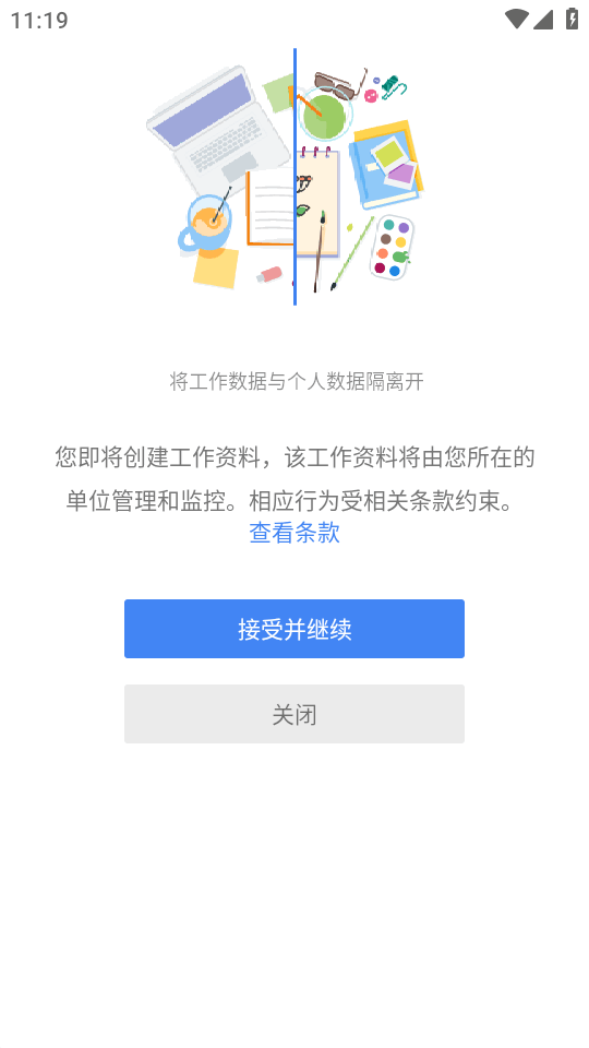 解决方案:将不受信任的应用放置在一个独立的安卓工作配置文件中。一个设备上的两个独立空间: