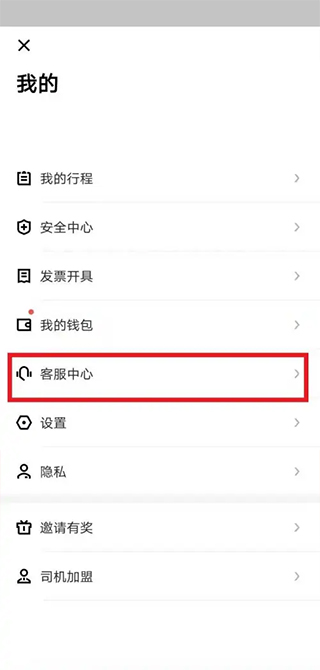 个人中心页面,点击选择客服中心。