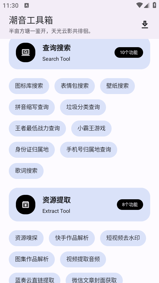 全新升级改版优化界面ui的一款手机工具箱软件,潮音工具箱app打开后可以直接使用,所有功能全都免费,选择功能即点即用,操作非常方便,一个应用解决诸多应用的需求,很好用实用,安卓手机必备的实用软件。
