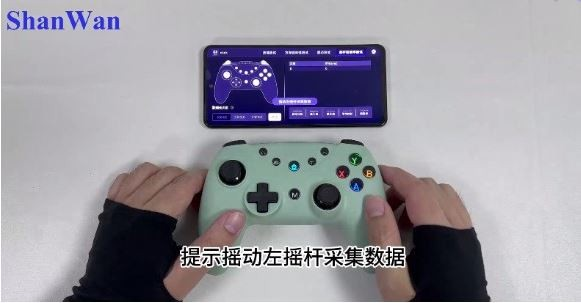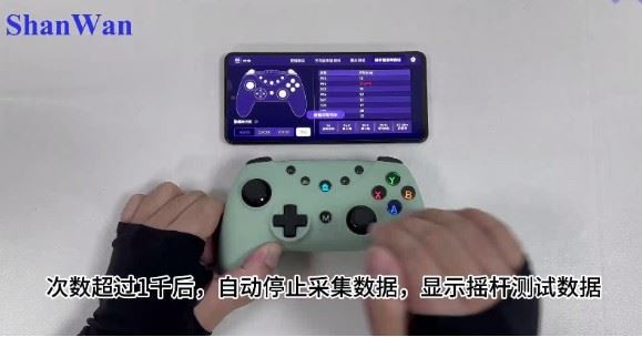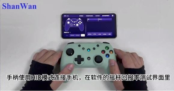 1、手柄使用HID模式连接手机,在软件的摇杆回报率测试界面里。