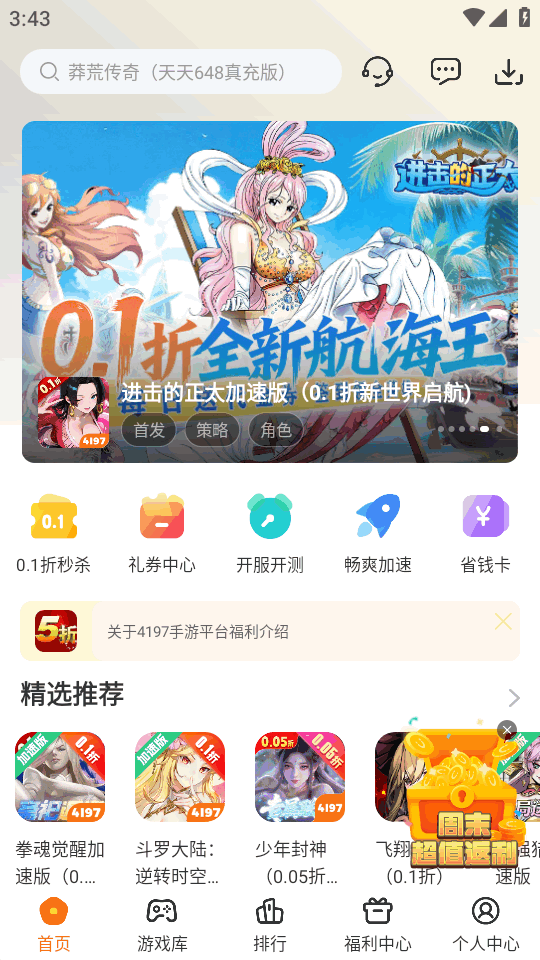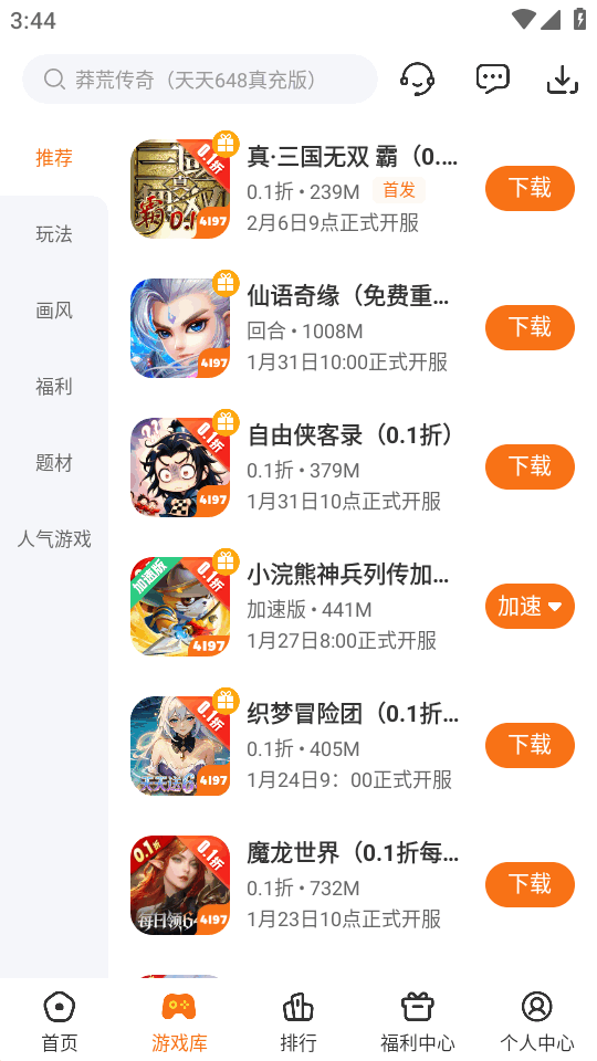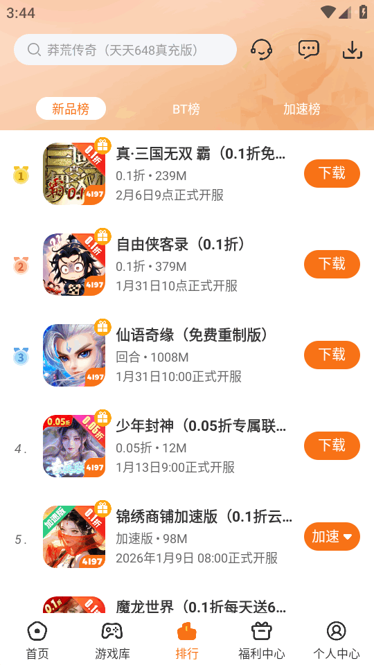 虫虫助手官方专门打造的一个福利手游平台,4197手游盒子,这里专门提供一些福利bt游戏给大家,可以快速搜索和查询最新的游戏,拥有超多的福利可以领取,喜欢玩bt类游戏的朋友必备,软件中内置了排行榜和丰富游戏库,各种类型玩法都有,喜欢的可以试试。