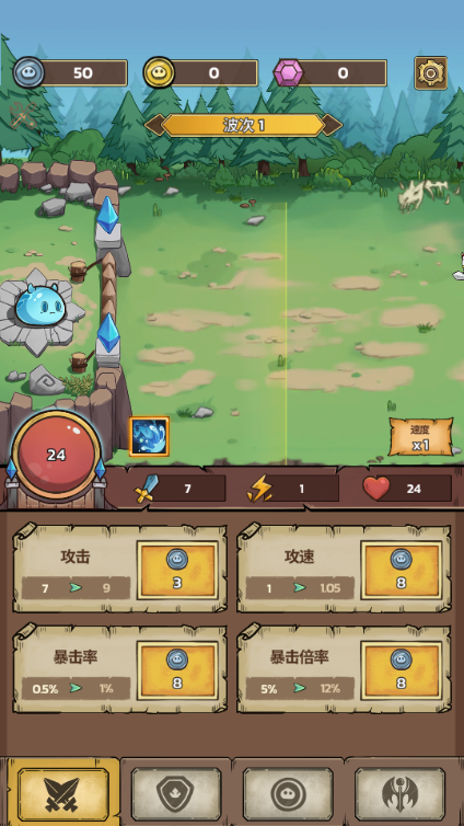 5、一切准备就绪?点击主界面「出征」按钮,踏入第一片危机四伏的魔法林地——你的史莱姆城堡传奇,此刻正式启幕!