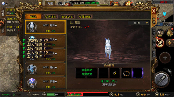 所有野外地图进入无限制,所有怪物都能爆装备,地图等级越高,爆的装备越好!