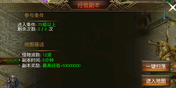 4、每日经验副本,超高经验,每日必做。
