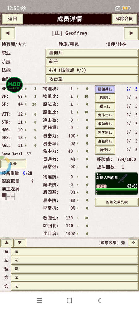 7、在公会点击成员确认可以为你的伙伴装备不同的武器和防具,并且还能为他们分配不同的技能点。