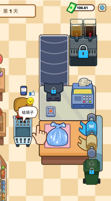 1、打开收银员之星游戏,给一个袋子
