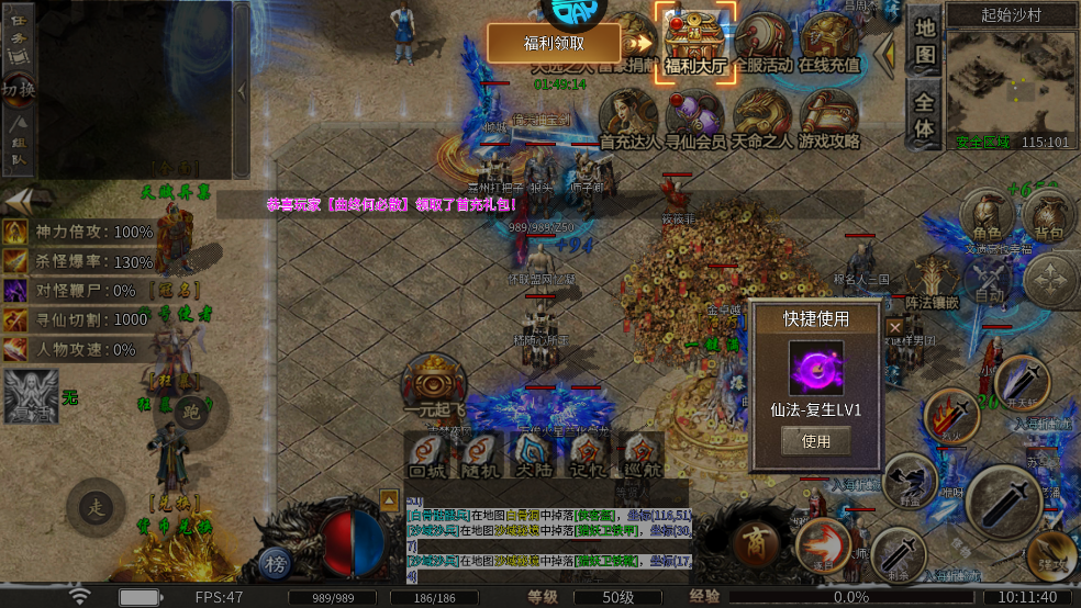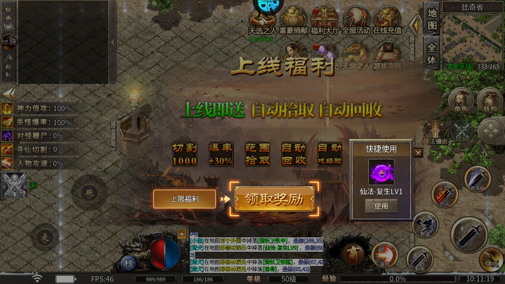 2、点击领取上线奖励,正式进入游戏。