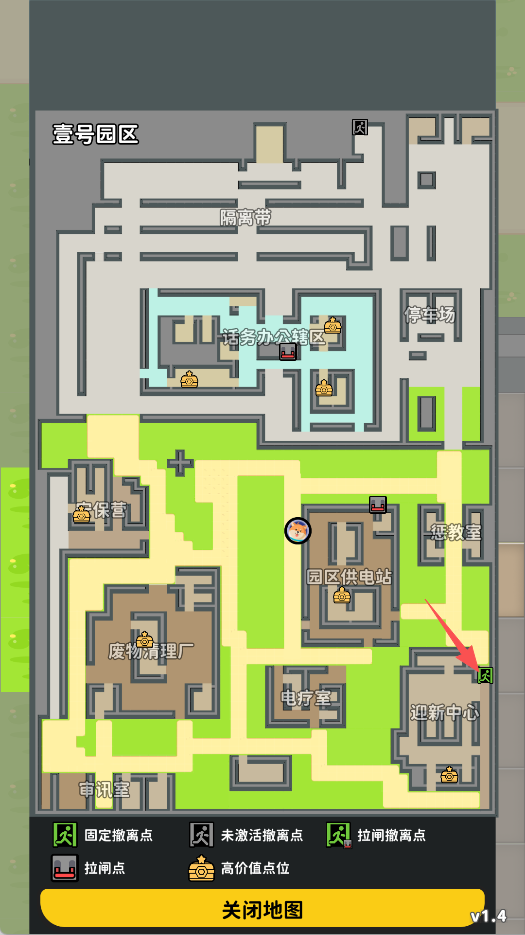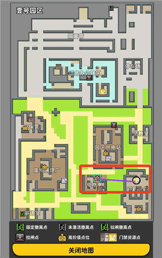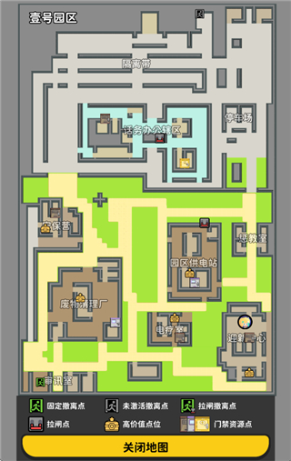 2、我们可以看到这个地图的布局、以及撤离点、拉闸点和高价值点位等。