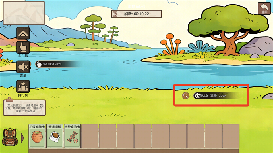 1)野生恐龙在每个区域地图分布不同,点击地图场景中【恐龙群】,可查看该区域能探索发现的恐龙类型。