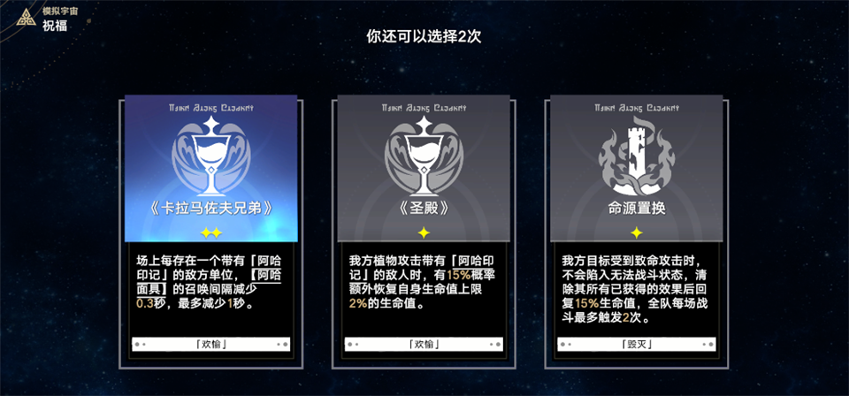 祝福只为战斗提供加成效果,祝福属于不同的命途。每个命途拥有18个祝福,分别有3个三星祝福、6个二星祝福、9个一星祝福。