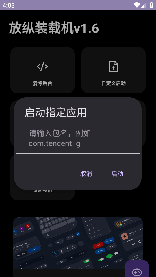 6、如果点图标没有你安装的游戏可以点自定义启动,输入包名即可。