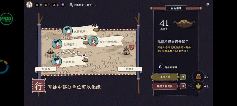 值得注意的是,信徒之间并非简单的数值堆叠关系,而是存在明确的克制机制,因此单纯依靠人数优势并不可行。游戏以首座城市为起点向外扩展势力范围,越远的目标消耗的资源越多,尤其是“面包”这一关键物资。途中可以通过化缘获得补给,但玩家需要权衡:是留作军需,还是施舍他人换取影响力。重复造访旧区域能够增强统治范围,而在分配完物资后,还要决定是否让信徒进食。若补给不足,不仅影响力下降,甚至会出现追随者离散的情况。
