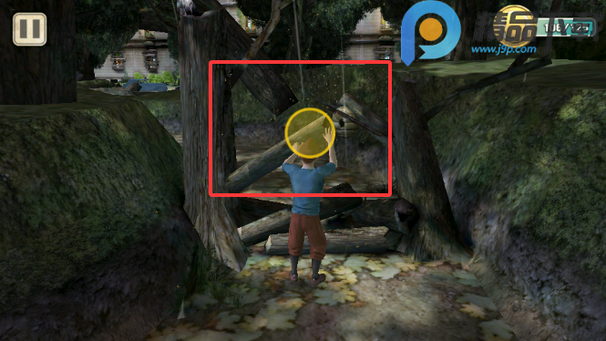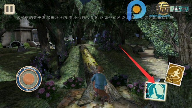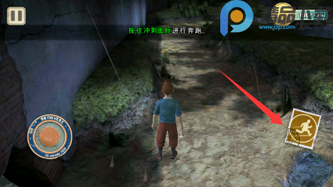 1、使用左下角的虚拟摇杆来控制丁丁的移动