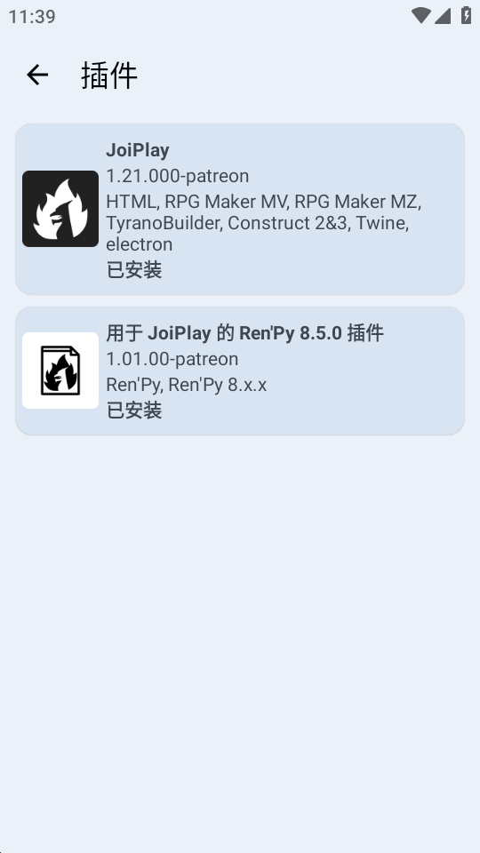 2、先安装好joiplay模拟器和用于 JoiPlay 的 RenPy插件到手机上。