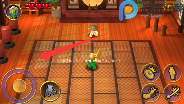 3、使用左下角的摇杆来控制角色移动