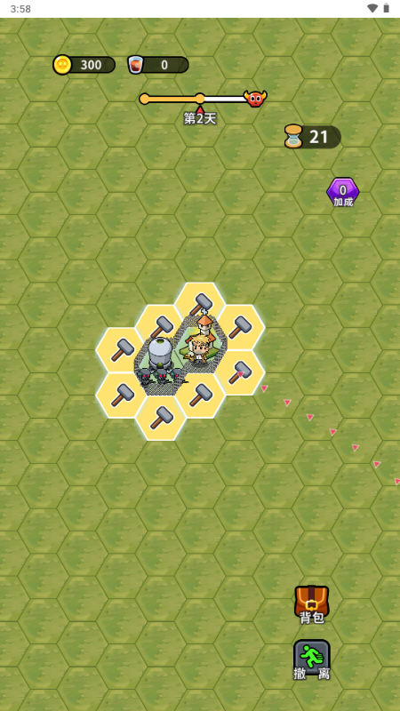从零开始搭建专属城池,全力抵御觊觎汽水的小偷怪物!游戏进度可查看正上方进度条,撑过指定天数即可斩获胜利。修建建筑和地形需消耗右上角的沙漏资源,每日夜晚结束后将自动获得沙漏,也可多建造沙漏建筑来提升资源获取量。快来用有限的资源,打造一座固若金汤的汽水守护城吧!