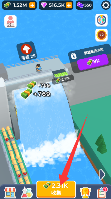 1、点击解锁一座新的水坝