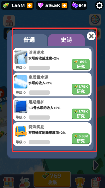 2、使用钞票升级水坝的研究