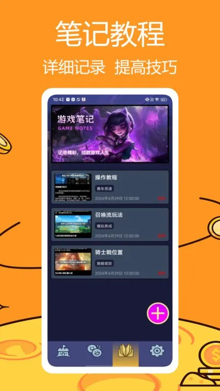 1、点击界面的"+”或“新建”按钮,开始创建一条新的游戏笔记。