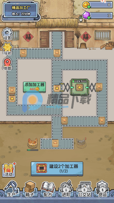 扩张产业版图:赚取足够金币后解锁新工厂区域,扩大生产规模,引入更多加工设备和商品类型,打造从农场到工业巨头的完整产业链。