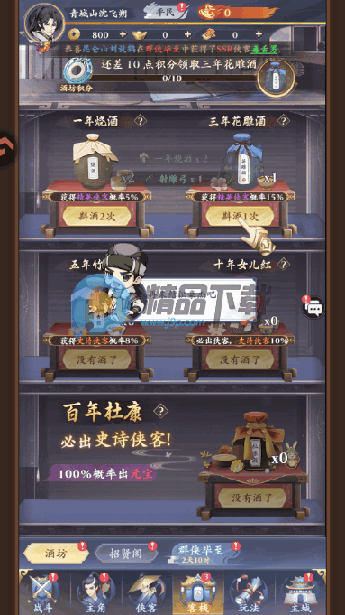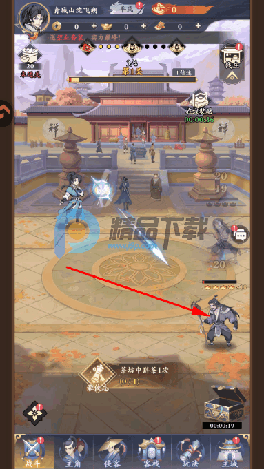 2、拥有宏大江湖世界观,汇聚百位侠客角色,可自由收集养成、搭配羁绊阵容,体验策略战斗与轻松挂机乐趣。