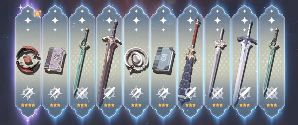 每个账号只能带走总重量不超过16的奖励,例如1个A级与1个B级奖励,或是2个B级奖励与1个C级奖励。而担心自己比较脸黑的同学也不要担心,活动设置了一个保底机制,每41抽必定获得一个A级奖励!· 我该抽什么?排除脸黑的情况,假设我们在这次活动中抽到了所有奖品,那我们该保留哪些呢?A级的2把4星武器其实并不算稀有,可以通过在游戏内收集素材打造获得,而属性也劣于卡池里抽到的4星武器。由于存在十连保底,即使是无氪玩家,前期也会在抽老婆/老公的过程中获得相当多的4星武器。
