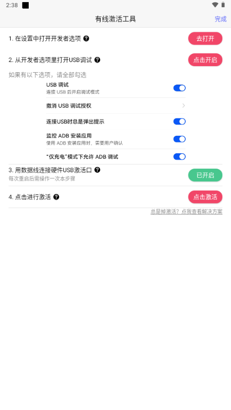3.用数据线连接硬件USB激活口每次重启后需操作一次本步骤