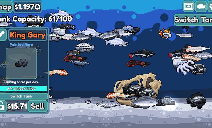 1. 这是一款减压的放置类游戏,购买可爱鱼苗养大后卖掉赚钱。