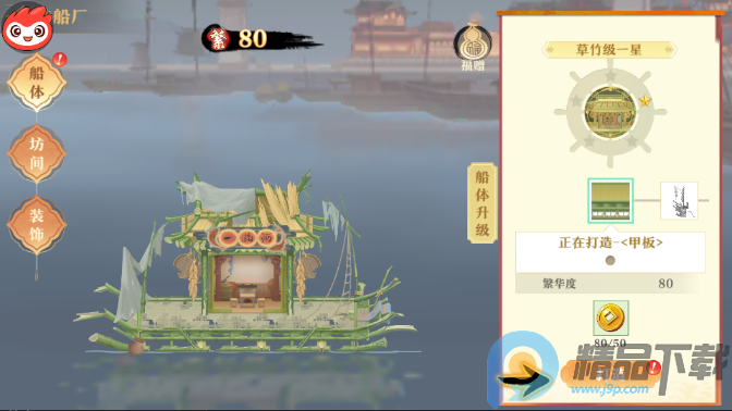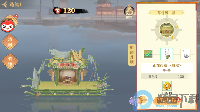 从初始小船起步,逐步扩建厢房、升级厨房设备、研发特色菜品,并招募高颜值厨伶角色,通过自由装饰打造专属美食王国。